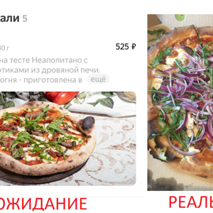 Ну с температурой пиццы ещё можно смириться. Но сегодня были заказаны две пиццы, которые оказались абсолютно отвратительными на вкус. Первая – стейк-пицца была полностью обсыпана луком, при этом, надо заметить, на фото пиццы в меню вообще не видно лука. Вероятно, луковый ковер был сделан, чтобы заглушить затхлость сухого цыпленка и говядины. Выглядело это нелепо. Повар, ты решил пошутить?! (см. фото). Вторая – лайт пицца, заказываю первый раз, возможно, она и задумана отвратительной (такая концепция) – дело вкуса, тут сложно что-то сказать.